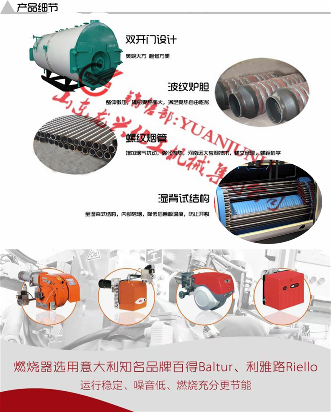 山東龍興集團是一家導(dǎo)熱油熱載體及熱水、蒸汽加熱鍋爐設(shè)備的大型集團化生產(chǎn)企業(yè),三十年來我公司致力于系列燃油、燃?xì)?/span>有機熱載體爐/導(dǎo)熱油爐,電加熱導(dǎo)熱油爐,燃油燃?xì)?/span>蒸汽鍋爐,燃油燃?xì)鉄崴?/span>鍋爐及蒸汽發(fā)生器,余熱換熱等設(shè)備的開發(fā)設(shè)計與制造。集團銷售部長原君禮現(xiàn)真誠為您推薦0.5-30噸系列燃油燃?xì)?/span>蒸汽鍋爐,歡迎您致電和微信(手機同號)咨詢!!